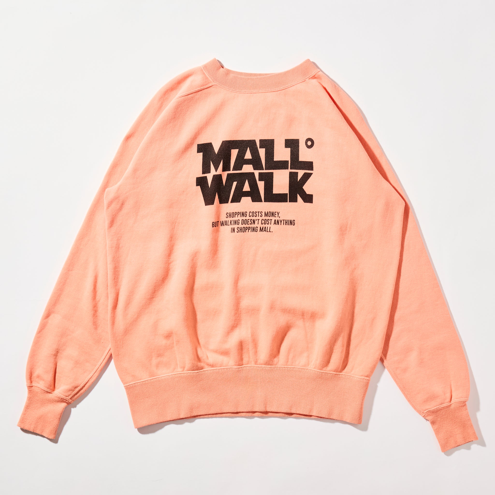 1960~70年代の織機で編まれたアズマ裏毛を使用したライン。アートディレクター”ハイロック氏”によるグラフィックデザイン。90年代アメリカで生まれたMALL WALKというムーブメントをグラフィックに配した、少しユーモアを交えたアスレティックスウエット。フリーダムスリーブ、製品染による雰囲気あるカラーリングを採用。吊り裏毛同様に丸胴・筒状のリブを使用。日本製。